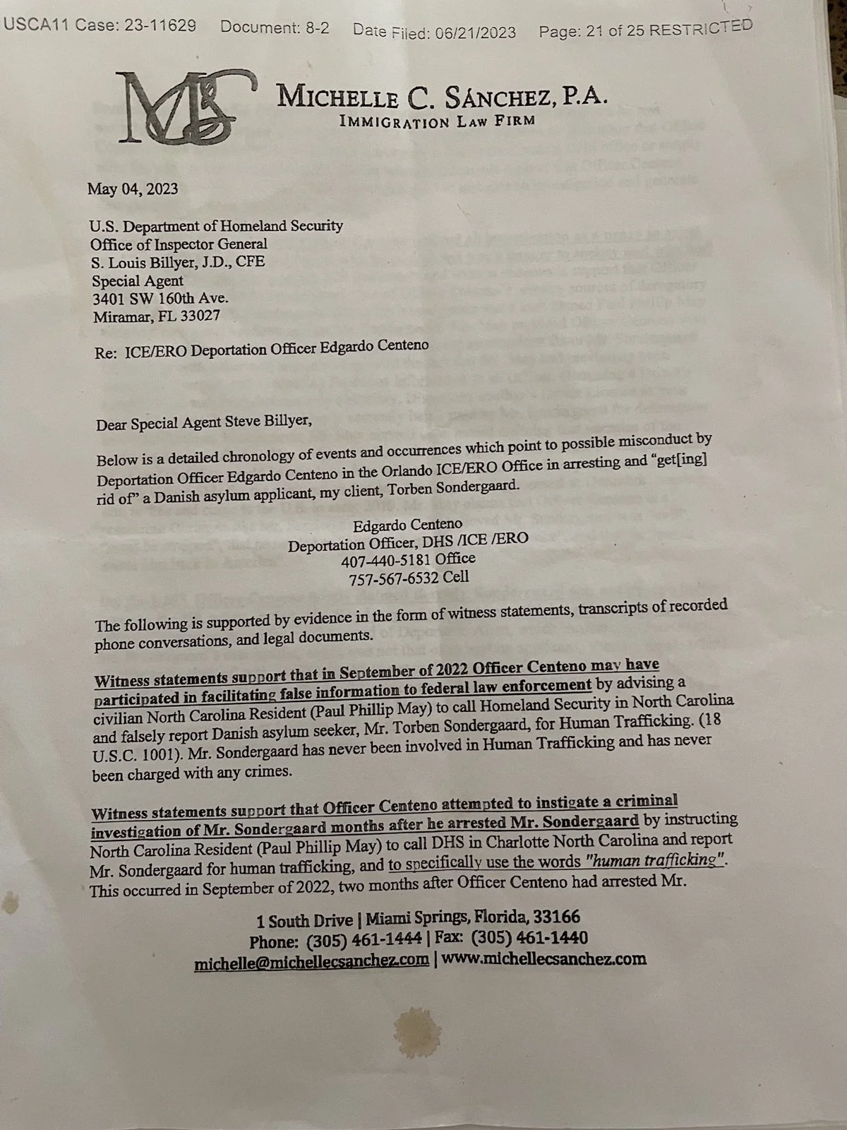 On June 30, 2022 Torben was asked to attend an interview with U.S. Immigration and Customs Enforcement to “discuss his immigration status” in Orlando.